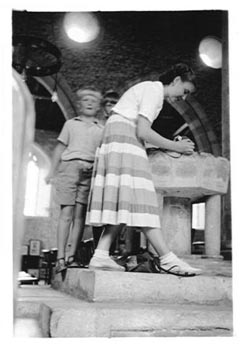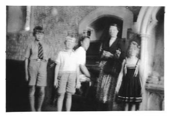 | Doady and the children with June Mason inside Bosham church | ||