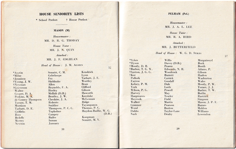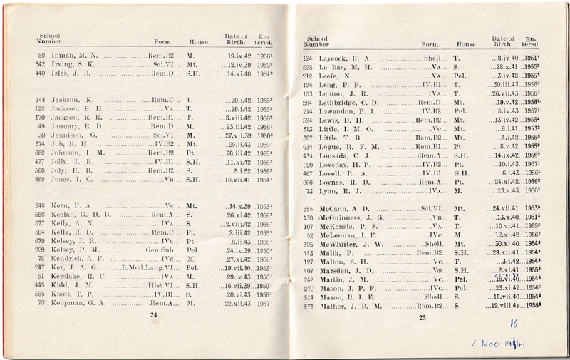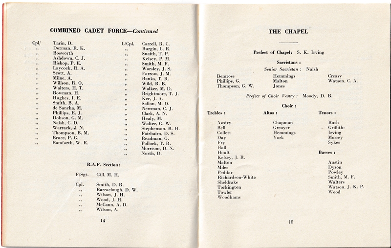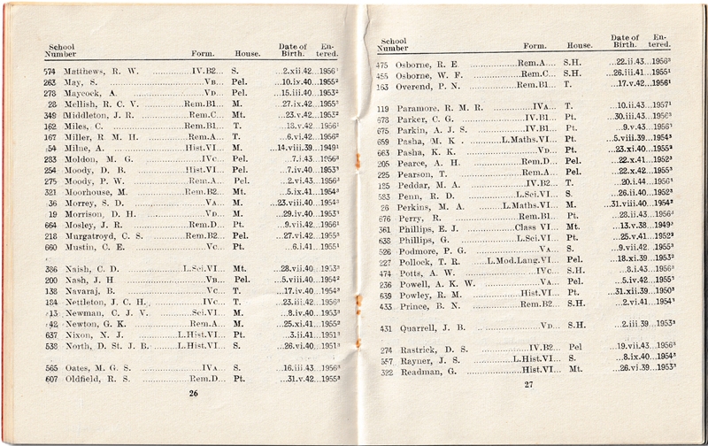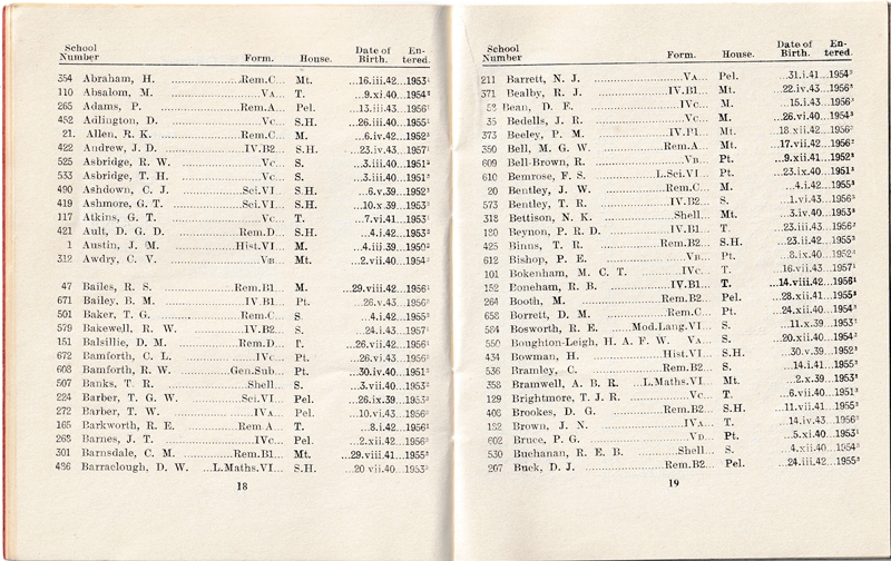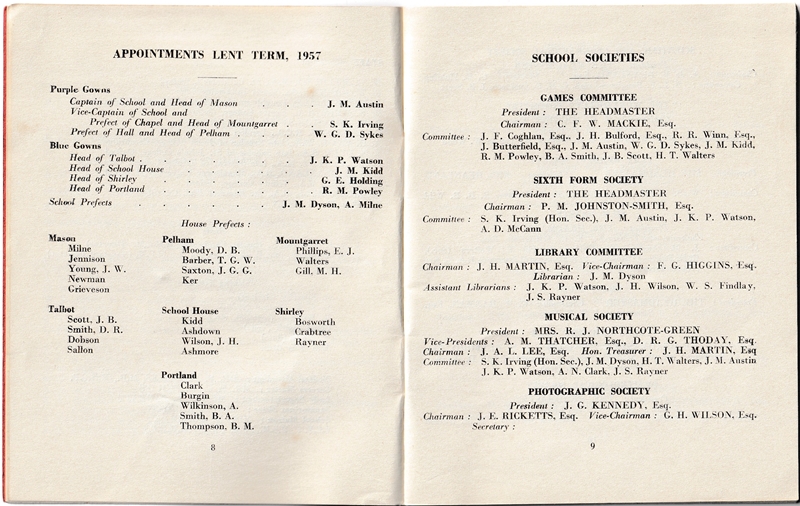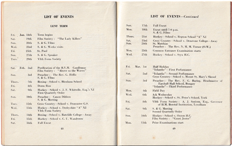School List - Lent Term - 1957